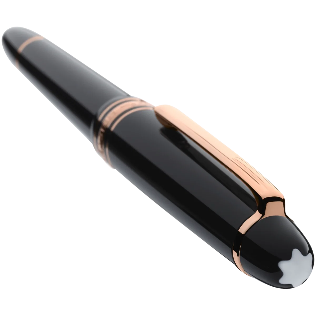 Colecția Montblanc Meisterstück Classique placată cu aur roz este un design care scrie istorie. Lansată în 1924, cuvântul Meisterstück, care înseamnă „capodoperă”, a devenit simbolul scrierii de lux de înaltă calitate. Capacul și corpul sunt realizate din rășină prețioasă neagră, cu emblema albă Montblanc încrustată în partea superioară a capacului.
