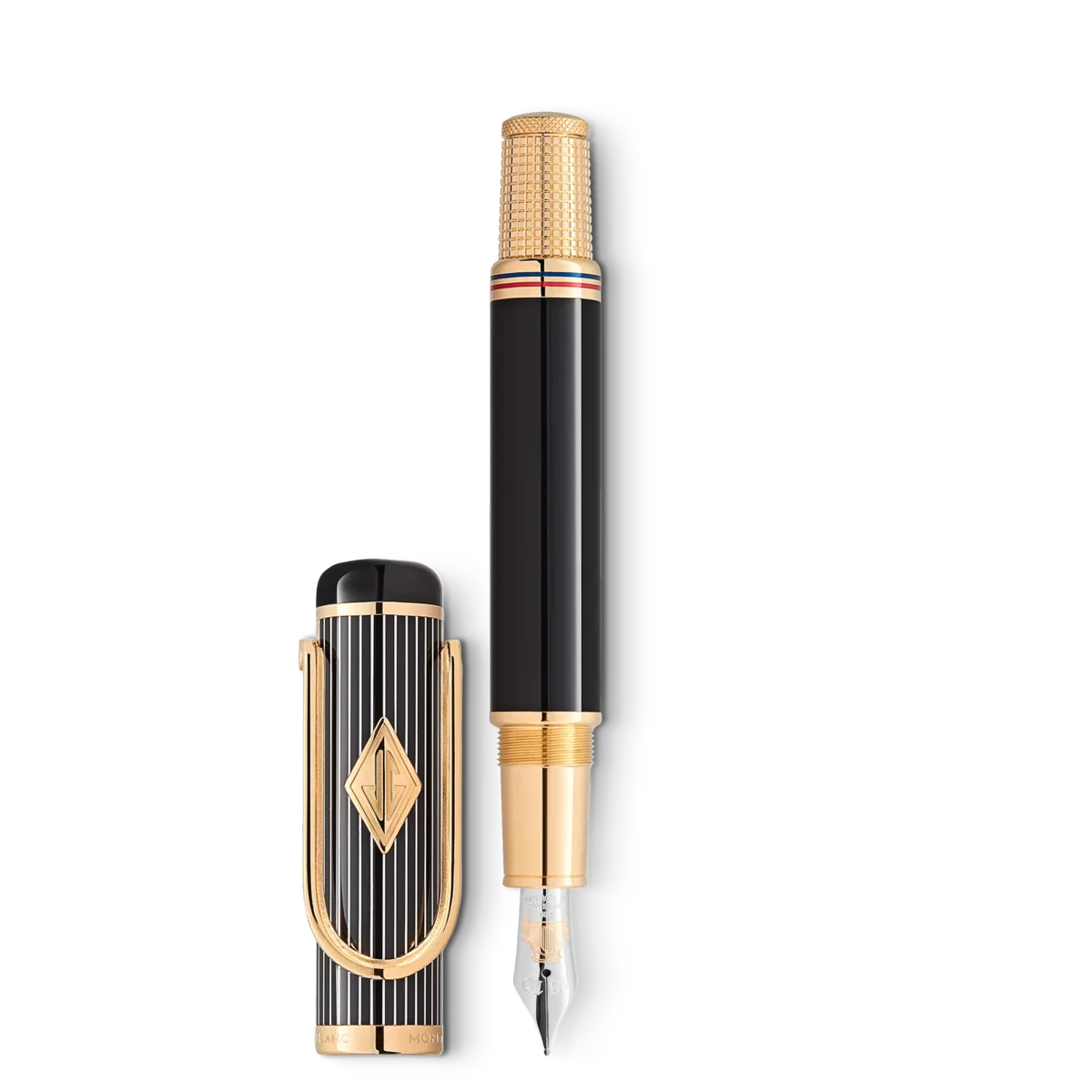 Anumite romane rămân în istoria literaturii și, în același timp, ajung să simbolizeze o întreagă epocă. „Marele Gatsby” al lui F. Scott Fitzgerald este una dintre aceste bijuterii ale literaturii americane moderne. Publicat în 1925, romanul zugrăvește o imagine fascinantă a epocii jazzului și a anilor ’20, o perioadă de prosperitate și autoindulgență fără precedent. Orașul New York pulsând de viață, vilele opulente din Long Island și petrecerile strălucitoare ale înaltei societăți constituie fundalul poveștii lui Jay Gatsby, un milionar misterios, care nu se va da în lături de la nimic pentru a recâștiga afecțiunea iubirii pierdute din tinerețe, Daisy Buchanan. Stilul ales de elita epocii a devenit un clasic al modei pentru oamenii de afaceri de succes – și sursa de inspirație pentru acest instrument de scris. Designul cu dungi al capacului, realizat din lac prețios alb-negru, se armonizează cu corpul finisat în lac prețios negru. Puterea aparentă a banilor este simbolizată în această ediție de agrafa acoperită cu platină, care are forma unei agrafe pentru bani. Deschiderea sa rotunjită strălucește cu inițialele lui Jay Gatsby sub forma unui monogram Art Deco romboidal de culoare aurie. Mitul visului american și designul flacoanelor elegante din perioada Art Deco sunt evocate de conul care imită capacul cu filet gravat al unui flacon și de inelele fine în culorile steagului american care îl înconjoară. Emblema Montblanc de pe vârf este realizată din sidef, un material ale cărui culori irizate și strălucire sclipitoare au inspirat unele dintre cele mai elegante creații ale designerilor de bijuterii din perioada Art Deco. Esența visului american împlinit este dezvăluită atunci când se scoate capacul și se zărește penița bicoloră, realizată manual, din aur masiv 750 placat cu rodiu. Aceasta este decorată cu o imagine a mașinii somptuoase a lui Jay Gatsby, descrisă cu entuziasm de F. Scott Fitzgerald ca fiind „de o culoare crem bogată, strălucitoare cu nichel, … și terasată cu un labirint de parbrize care oglindeau o duzină de sori”.
