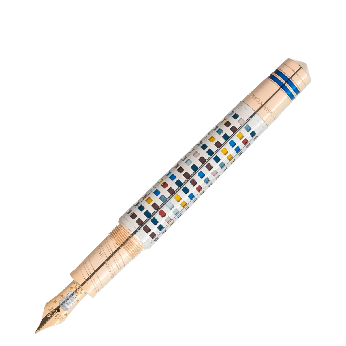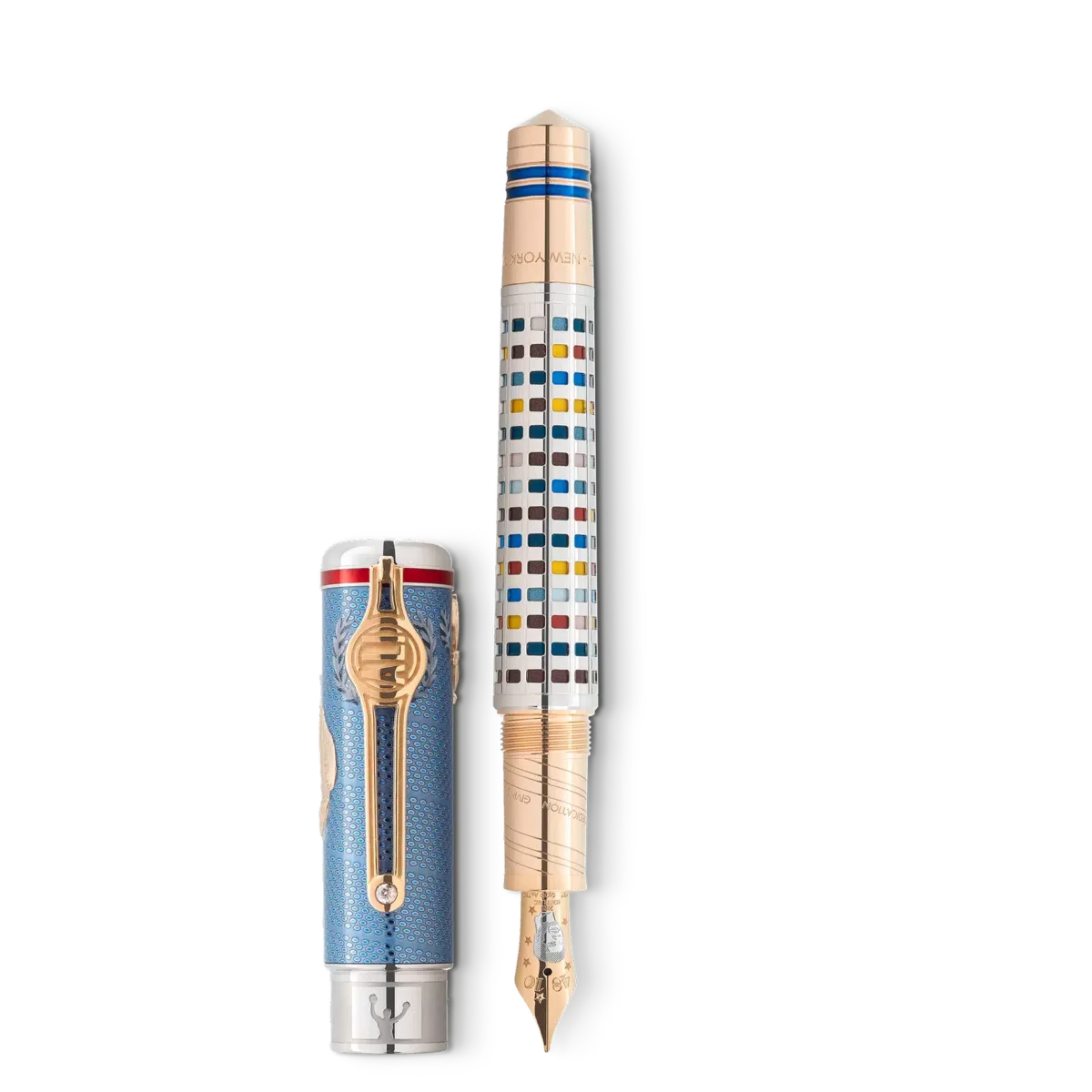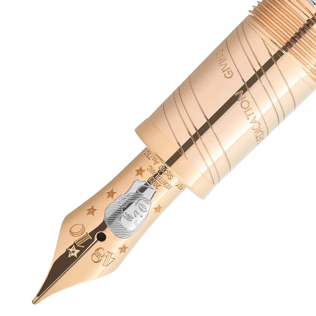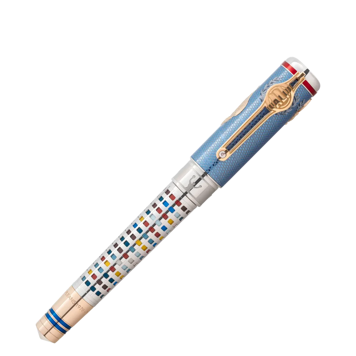 Puțini sportivi sunt celebrați și onorați ca triplul campion mondial la categoria grea, Muhammad Ali, ale cărui momente legendare în sport și activismul pentru drepturile civile l-au făcut unul dintre cei mai influenți sportivi și filantropi ai secolului XX. Ca sportiv, Ali a zguduit lumea cu forța, abilitatea și personalitatea sa, devenind campion mondial la categoria grea la doar 22 de ani. Cu toate acestea, cele mai mari rezultate ale sale au fost obținute datorită eforturilor sale umanitare.Capacul are forma unui sac de box, cu un lac guilloche și incrustări din aur masiv Au750 gravate manual, care seamănă cu o mănușă de box și o porumbelă a păcii. Partea din față poartă gravate cele șase principii fundamentale ale lui Ali. În onoarea celui de-al treilea titlu mondial din cariera sa de boxer, emblema Montblanc de pe capac este împodobită cu numărul 3 turnat din aur masiv Au750. Poza de victorie a lui Muhammad Ali este gravată alături de inscripția „TKO-W-7 (15)” (knockout tehnic în runda a 7-a (din 15)) pe inelul capacului acoperit cu aur. Centura de victorie pe care Muhammad Ali o purta cu mândrie a inspirat designul clipului scheletat, pe care este inscripționat „ALI”.Corpul stiloului este inspirat de „The Muhammad Ali Center” din Louisville, Kentucky, și reflectă ferestrele colorate ale clădirii. Conul este realizat din aur masiv Au750, cu gravuri speciale și incrustări de lac, și poartă inscripția „NEW ORLEANS 1978 NEW YORK 1998” – referindu-se la date importante: câștigarea celui de-al treilea titlu mondial, precum și anul în care a devenit Mesager al Păcii al Națiunilor Unite. Limitarea la 98 de stilouri face referire la anul 1998.