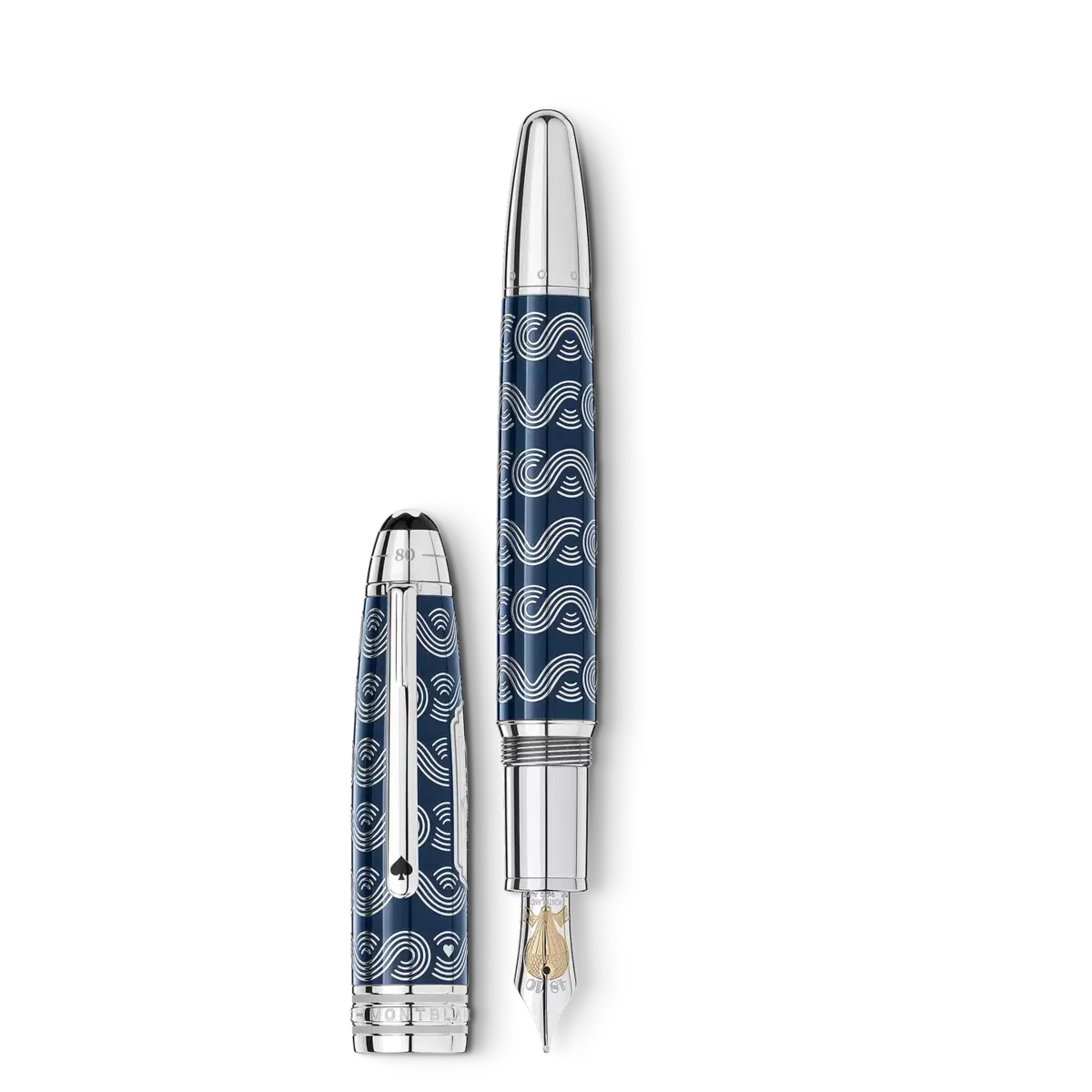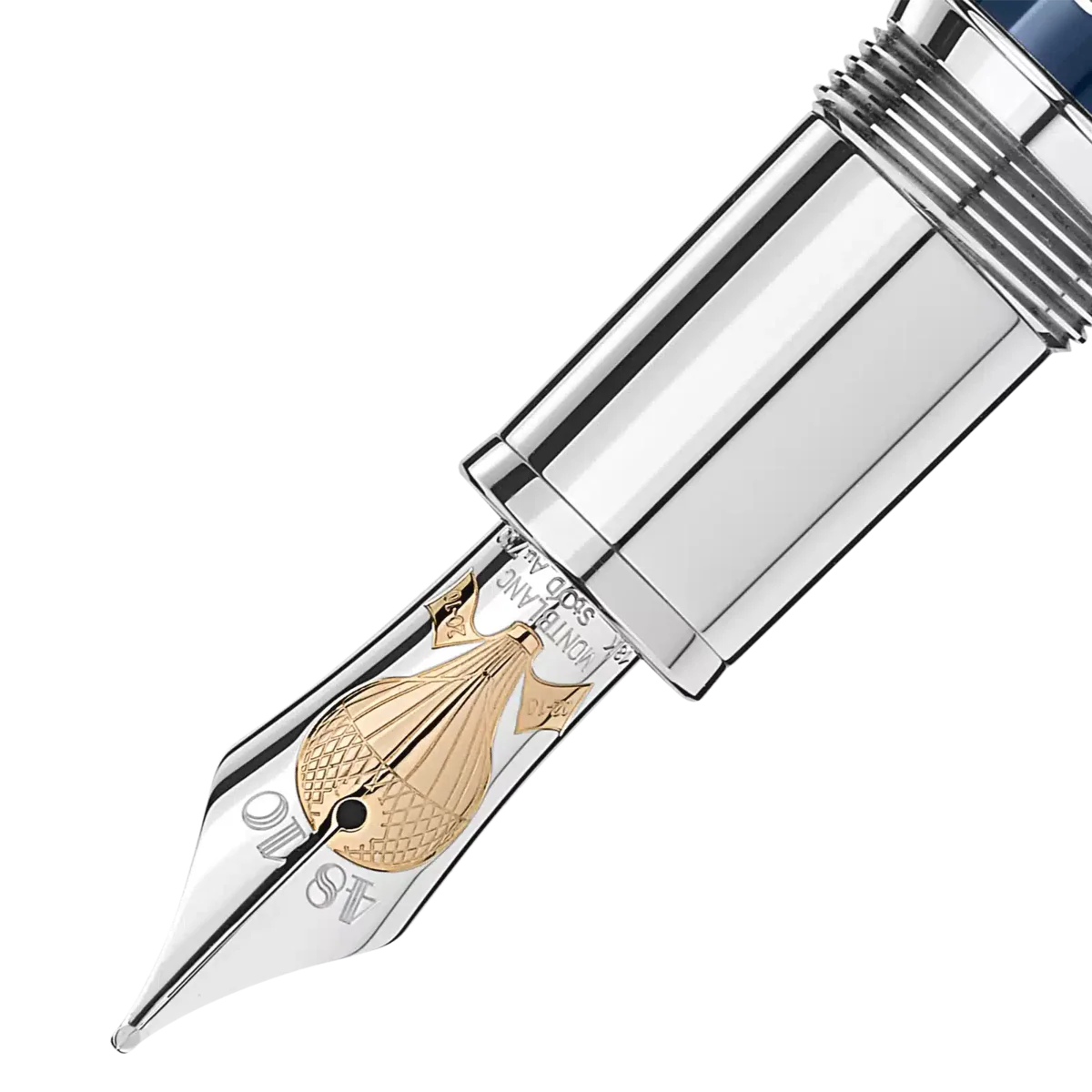 Colecția Meisterstück Around the World in 80 Days este inspirată din celebrul roman de aventuri al lui Jules Verne. Stiloul Solitaire Le Grand, în lac albastru translucid cu finisaj degradat, se inspiră din prima parte a călătoriei. Personajul principal călătorește, în principal cu vaporul, de la Londra la Bombay, traversând Marea Mediterană și canalul Suez. Capacul și corpul stiloului prezintă un model frezat cu elementele cheie ale romanului: valuri oceanice, suite de cărți de joc și un cartuș cu un vapor gravat cu laser. Capacul este embosat cu durata călătoriei, 18 zile de la Londra la Bombay și 80 de zile în total. Instrumentul de scris este finisat cu un penițel bicolor Au750 placat cu aur, în nuanțe de rodiu și șampanie, împodobit cu un balon cu aer cald și datele de început și sfârșit ale călătoriei aventuroase.