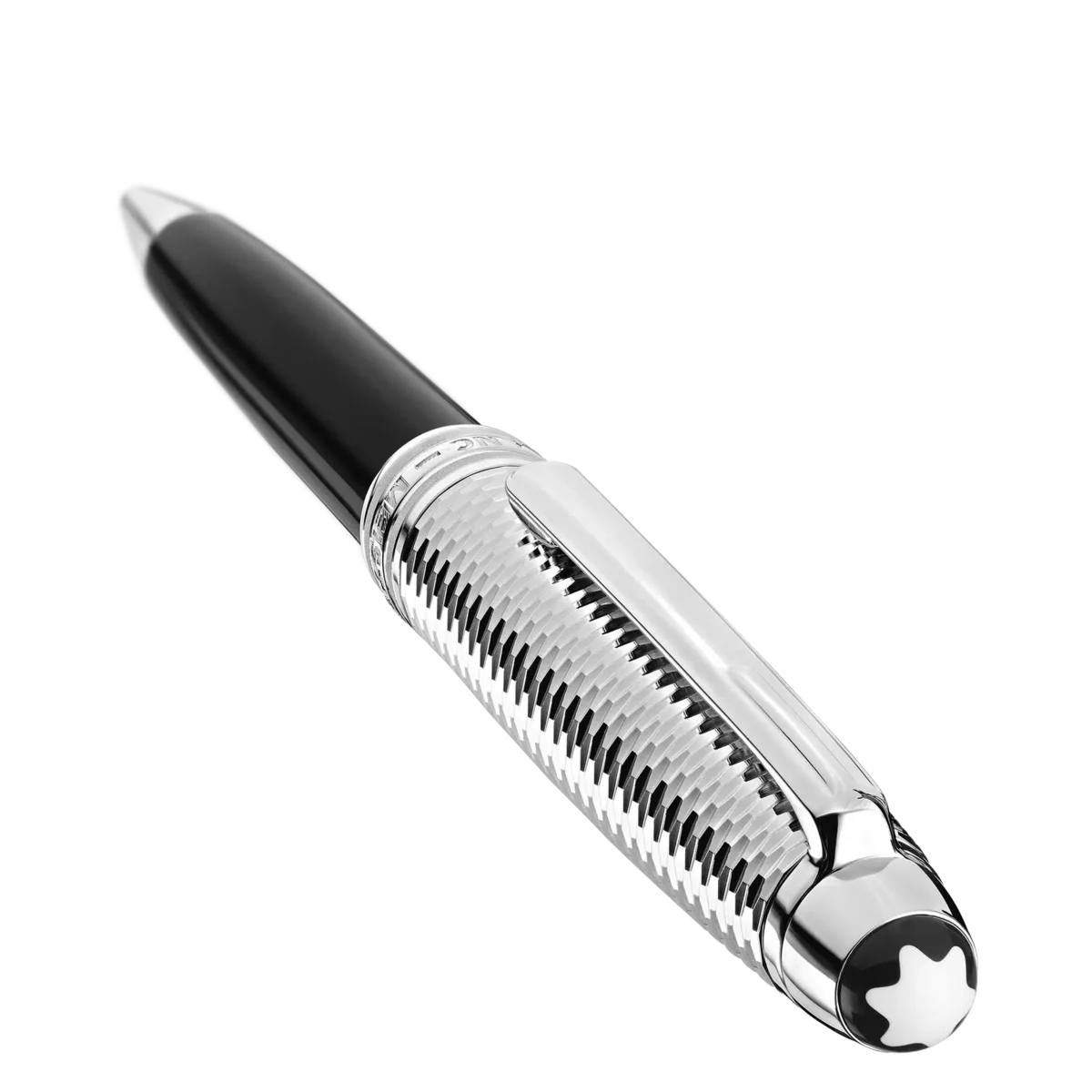 Meisterstück Solitaire Geometric Dimension a luat naștere din dorința de a uni designul clasic Montblanc cu materiale unice. Acest instrument de scris este realizat din rășină prețioasă neagră, gravat cu un model geometric tridimensional pe capac, cu efect optic într-o nuanță sofisticată de platină, un clip acoperit cu platină și trei inele acoperite cu platină, gravate cu numele mărcii Montblanc. Finisat cu emblema Montblanc, acesta apelează la individualitatea fiecăruia.