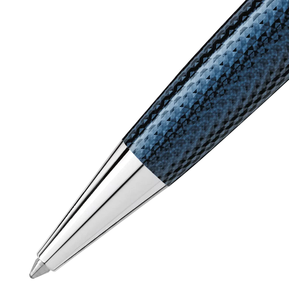 Meisterstück Solitaire Blue Hour Midsize se prezintă ca un produs Solitaire prețios, lăcuit în albastru, cu accesorii placate cu platină. Ora magică dintre lumina zilei și noapte – Blue Hour – creează un contrast armonios și o atmosferă uluitoare, care a servit ca inspirație pentru design. Modelul hexagonal de pe corp și capac reflectă refracția luminilor și traficul nocturn din orașele urbane.