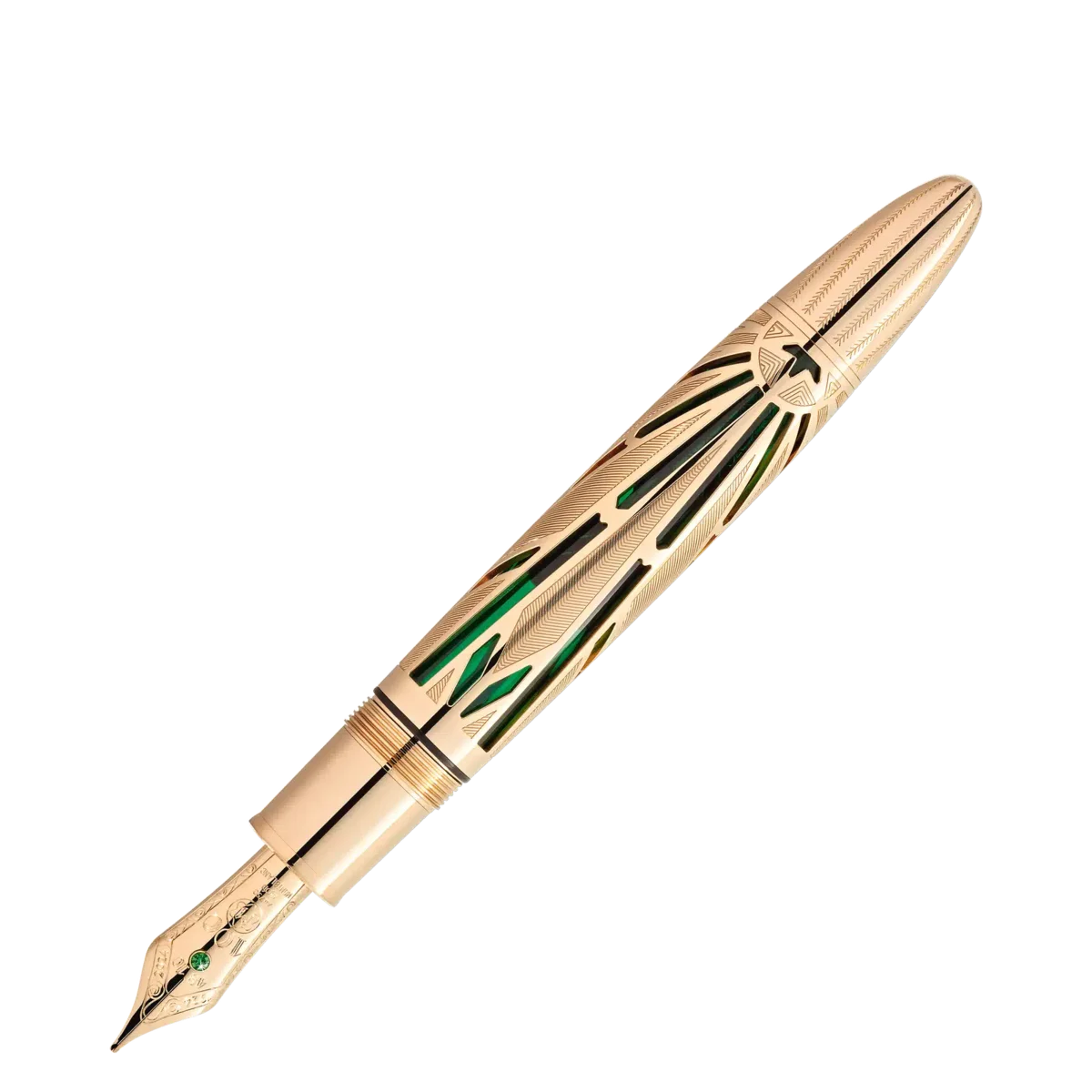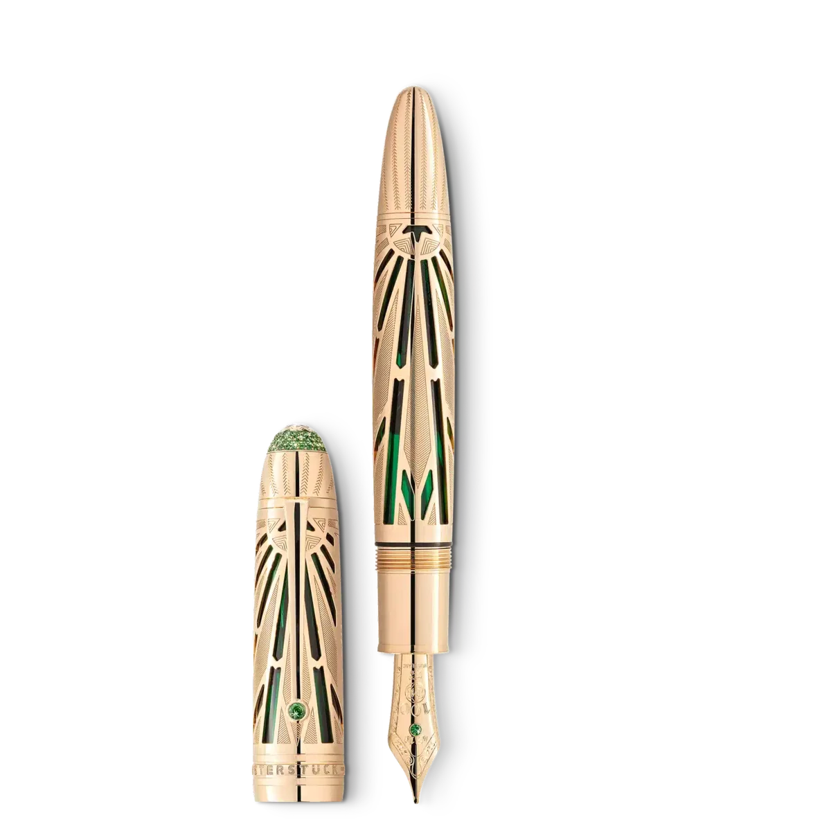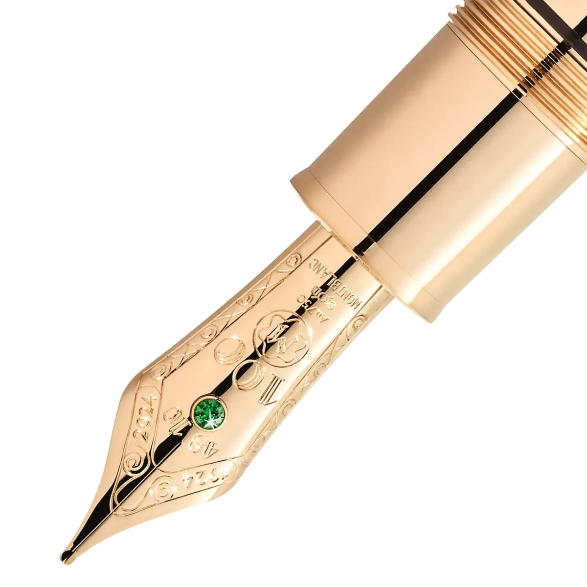 De la lansarea sa în 1924, Meisterstück de la Montblanc a fost considerat pe scară largă ca fiind instrumentul de scris rafinat prin excelență, simbolizând gustul rafinat și o extensie îndrăzneață a sinelui. Fie că a fost folosit pentru a scrie o scrisoare de dragoste sau pentru a semna un document istoric, Meisterstück a lăsat o amprentă de neșters pe paginile istoriei. Pentru a onora această etapă importantă, Montblanc a cercetat în profunzime arhivele sale și a creat colecția Meisterstück Origin, aducând un omagiu istoriei și moștenirii bogate ale mărcii. Colecția se inspiră din primele modele găsite în arhivele noastre, precum și din caracteristicile de design ale primelor ediții Meisterstück, capturând spiritul fondator și infuzându-l cu un stil modern. Această ediție limitată este realizată cu măiestrie din aur solid Au750 Signature Gold scheletat, cu gravuri manuale inspirate din modelul din arhivă și cu un strat translucid din lac verde. Clipul este un omagiu adus formelor timpurii ale clipurilor găsite la unele dintre primele instrumente de scris Meisterstück, evocând un sentiment de nostalgie. Este împodobit cu un tsavorit. La o inspecție mai atentă, se poate descoperi logo-ul original Meisterstück, care a împodobit capacul ca simbol al calității înalte încă de la începuturile sale. Capacul este încrustat cu un diamant tăiat Montblanc, înconjurat de tsavorite de diferite dimensiuni. Această ediție jubiliară este încununată cu un peniț solid din aur Au750 cu o tsavorită și o gravură manuală specială, care afișează cu mândrie numărul „100”, împreună cu anii „1924” și „2024”. Să toastăm pentru încă 100 de ani de excelență cu Meisterstück!