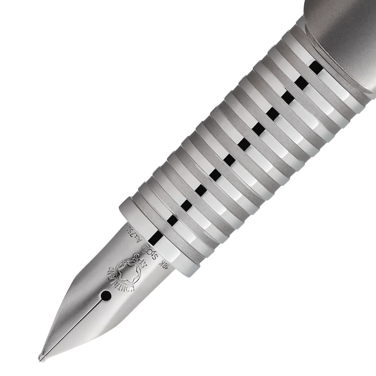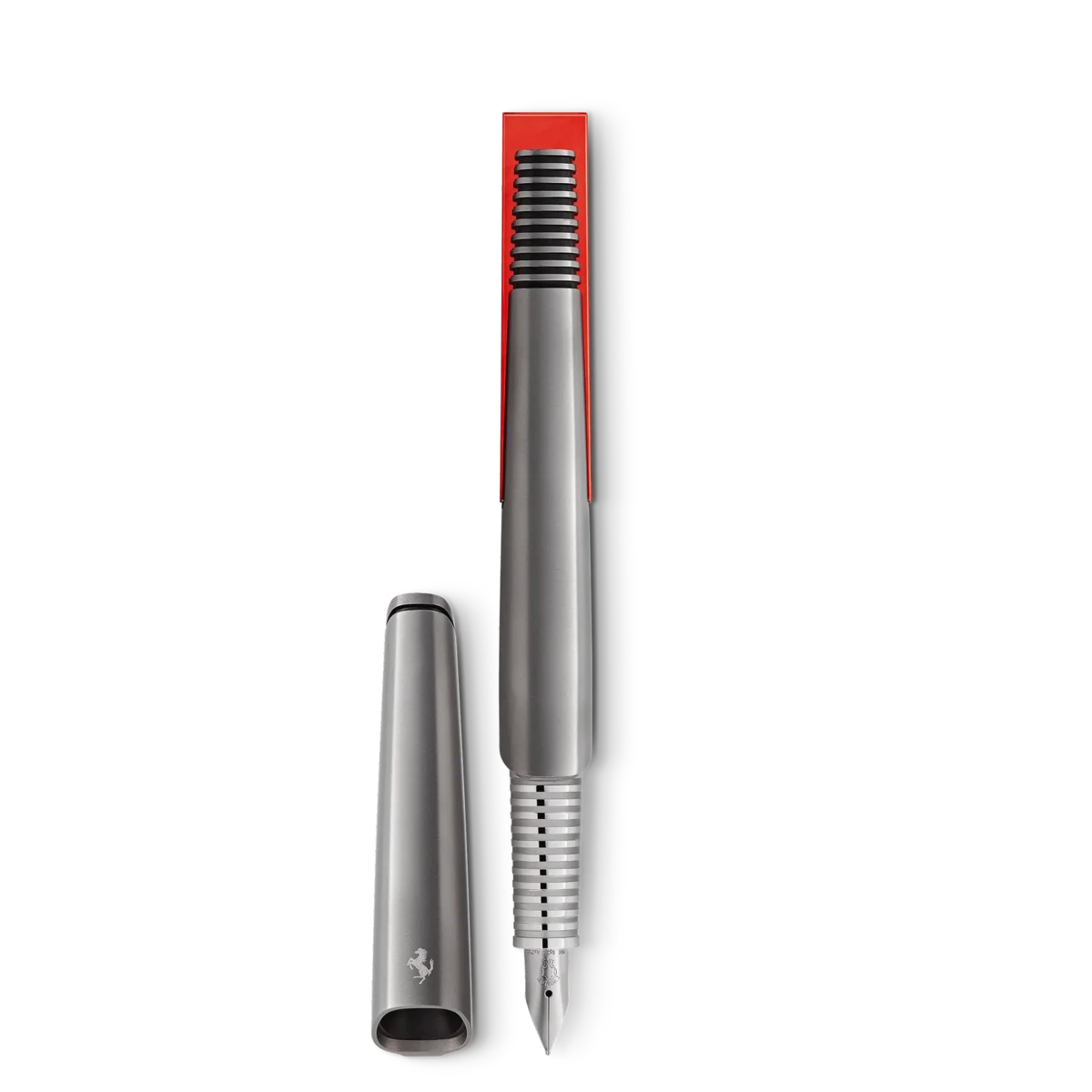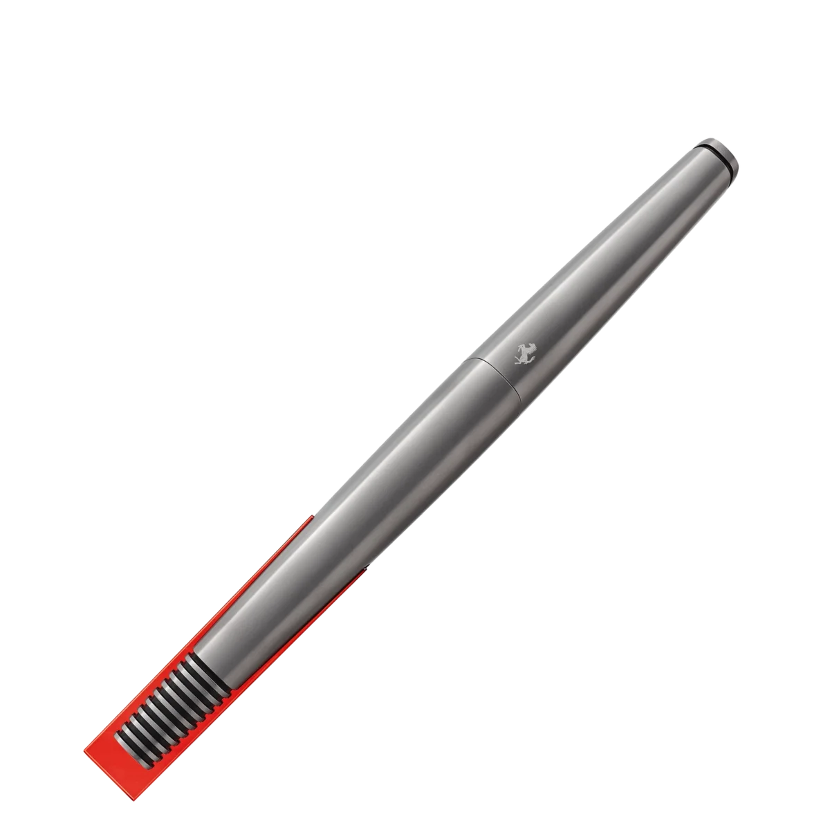 Echipa de curse Ferrari a obținut o victorie uimitoare, ocupând toate cele trei locuri de pe podium la cursa 24 Hours of Daytona din 1967. Acest moment spectaculos este sărbătorit în noul model Daytona SP3, parte a gamei Icona de la Ferrari, care aduce un omagiu tradiției îndelungate a companiei în domeniul curselor auto. Captând esența spiritului SP3, Maison a colaborat cu Ferrari Design Center și cu directorul de design Flavio Manzoni la Stilema SP3, o extensie remarcabilă a designului revoluționar. Montblanc Ferrari Stilema SP3 exprimă forma fluidă a mașinii prin utilizarea unui singur material pentru capac și corp: titan ușor, rar întâlnit în instrumentele de scris Montblanc. Unghiul vârfului capacului imită modul în care botul Ferrari Daytona SP3 taie aerul, în timp ce accentele aliniate pe partea din față și pe corp sunt derivate din lamele de pe barele de protecție ale mașinii, unde liniile creează un joc vizual de lumină și întuneric cu bare care par să dispară. Întruchipând liniile ușoare ale Ferrari Daytona SP3, acest mecanism de umplere cu cerneală a fost ascuns sub o lamă roșie, semitransparentă, care taie corpul din titan. Realizat din aur alb masiv pentru această ediție, mecanismul poate fi dezvăluit doar prin tragerea lamei înapoi. Odată ce rezervorul este plin cu cerneală și lama este blocată la loc, Montblanc Ferrari Stilema SP3 este pregătit pentru linia de start și gata de scris. Penița solidă din aur alb Au750 are o gravură specială „SP3”, iar iconicul cal cabrat Ferrari este, de asemenea, gravat cu laser pe capac. Emblema Montblanc, care se află în mod tradițional pe vârful capacului, este realizată în mod similar din aur alb solid Au750. Instrumentul de scris este livrat cu o husă special concepută, realizată din piele Meisterstück moale și căptușeală Alcantara, contrastată de cusături roșii aprinse.