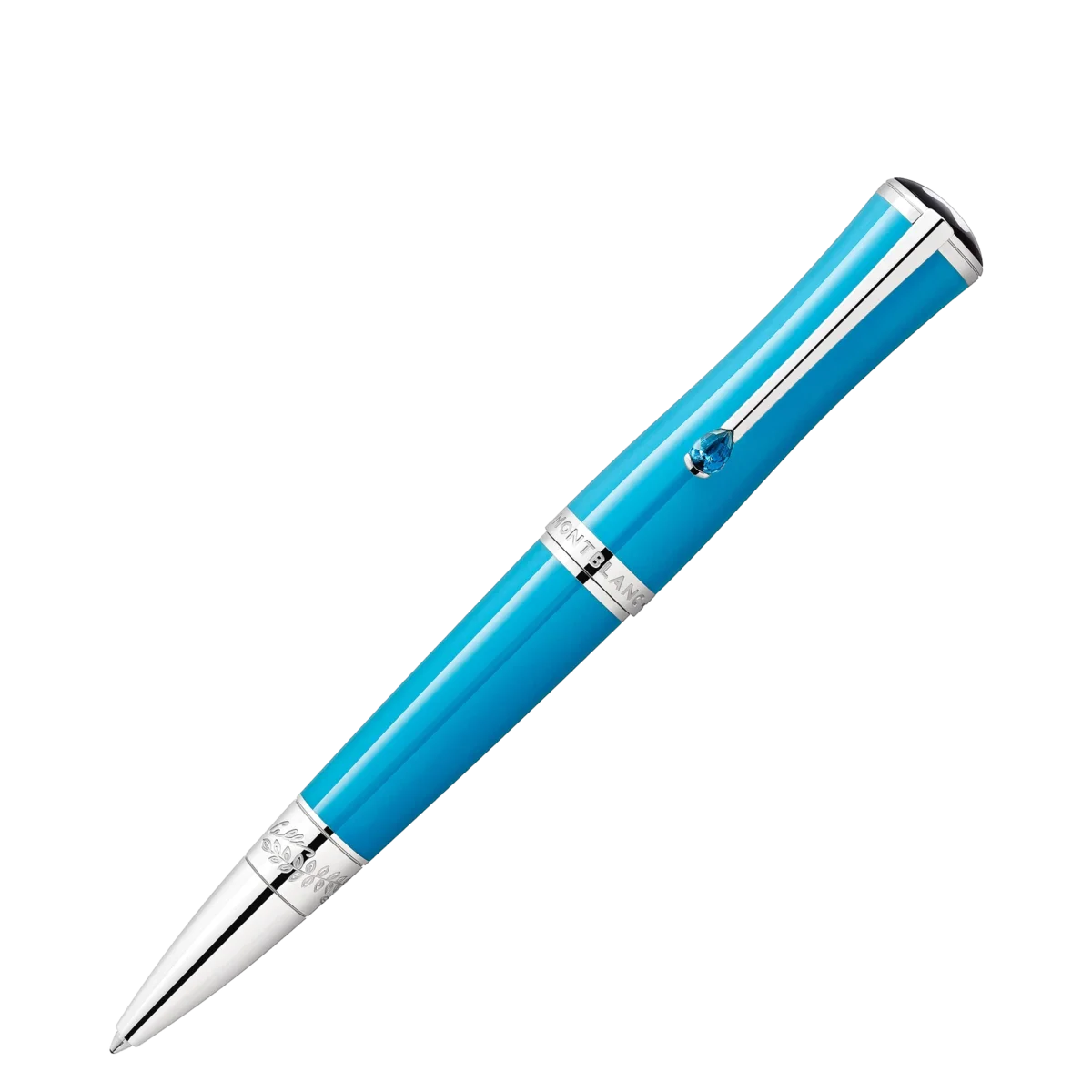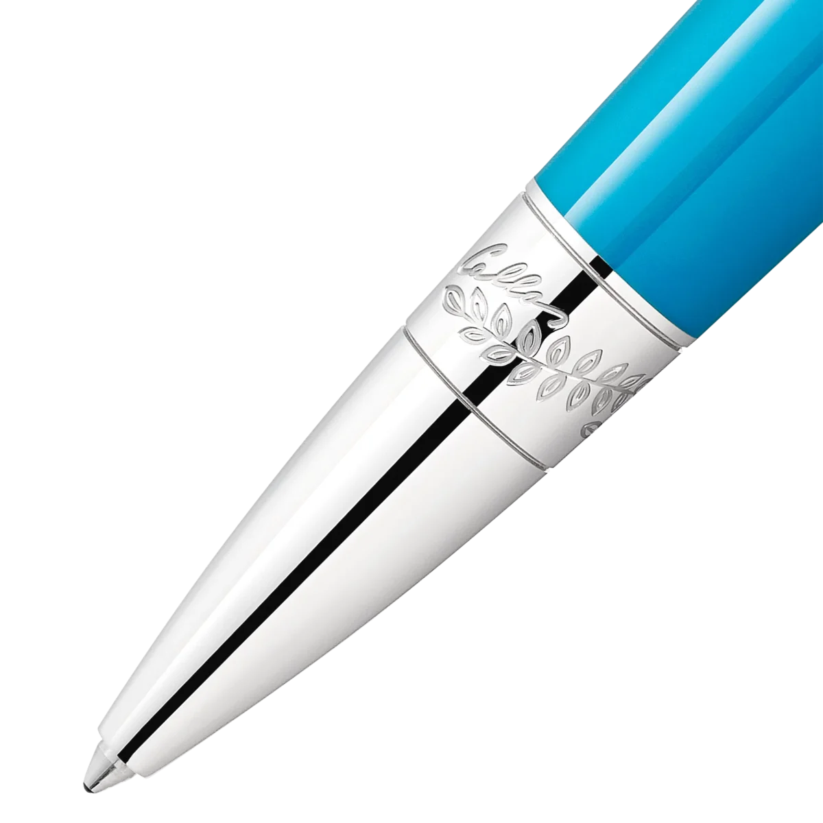 Montblanc Maria Callas Ediție specială Turcoaz este dedicat uneia dintre cele mai carismatice soprane ale secolului XX și apreciată icoană a stilului. Cu talentul, pasiunea și personalitatea sa, ea a întruchipat un anumit ideal al divei de operă. În unele dintre cele mai mari teatre de operă din lume, de la La Scala din Milano, la Opera din Paris, până la Metropolitan Opera din New York, era cunoscută sub numele de „La Divina” – cea divină. Ediția evidențiază una dintre culorile ei preferate, turcoazul, în rășina prețioasă a capacului și a corpului, reflectând în același timp frumusețea grațioasă a Mariei Callas în silueta sa zveltă și elegantă. În memoria patriei sale grecești înconjurate de mare, clema acoperită cu platină este decorată cu o piatră sintetică a cărei culoare amintește de albastrul turcoaz strălucitor al Mării Egee. Un detaliu al costumului dintr-unul dintre rolurile sale bel canto recunoscute, „Norma” lui Bellini, se reflectă într-un model de frunze de laur care înconjoară conul acoperit cu platină al ediției, împreună cu semnătura în relief a celebrei soprane.