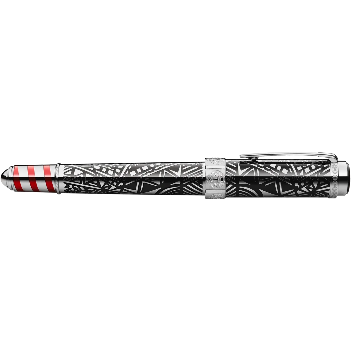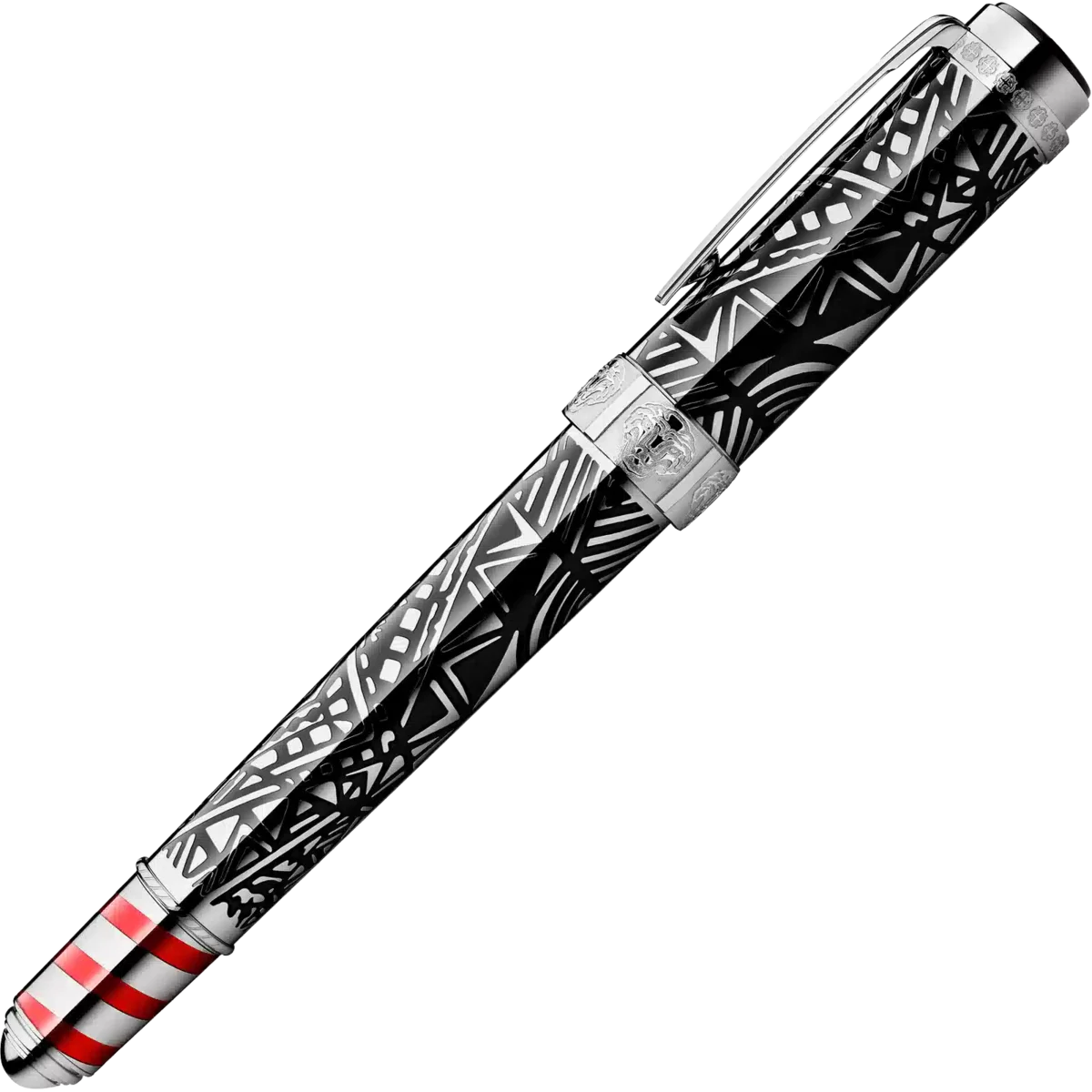 Peggy Guggenheim a fost una dintre cele mai influente colecționare și expozante americane de artă contemporană. Numeroși artiști tineri, precum Salvador Dalí, Pablo Picasso și Jackson Pollock, ale căror opere Peggy Guggenheim le-a expus în Europa și America, îi datorează succesul lor timpuriu. Designul liniar al agrafei și al capacului, precum și liniile și formele incrustărilor din lac negru din capacul și corpul acoperite cu platină sunt inspirate de lucrările Art Deco din colecția sa. Incrustarea spirală din lac roșu de pe con reprezintă stâlpii de ancorare cu dungi care mărginesc canalele venețiene. Capetele de leu în relief pe inelul capacului fac referire la palatul venețian al lui Peggy Guggenheim, Palazzo Venier dei Leoni, precum și la leul Sfântului Marc, simbolul Veneției.