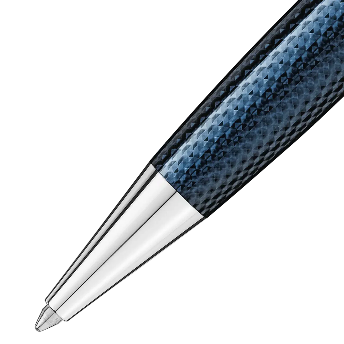 Meisterstück Solitaire Doué Blue Hour Classique se prezintă ca un stilou Solitaire prețios, lăcuit în albastru, cu accesorii placate cu platină. Ora magică dintre lumina zilei și noapte – Blue Hour – creează un contrast armonios și o atmosferă uluitoare, care a servit ca inspirație pentru design. Acest stilou blue hour utilizează un mecanism rotativ și este livrat într-o cutie cadou Montblanc. Capacul și clema cu număr de serie individual sunt placate cu platină pentru a completa perfect aspectul impresionant al corpului stiloului. Modelul hexagonal de pe corpul albastru reflectă refracția luminilor și traficul nocturn din orașele urbane.