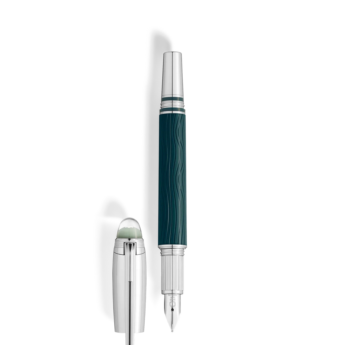 Colecția StarWalker PolarGreen aduce la viață frumusețea aurorei boreale. Pe Pământ, oamenii pot privi spre cer și pot fi transportați în tărâmuri minunate, fiind martorii acestui spectacol grandios. Cupola de pe capacul stiloului este realizată din rășină transparentă și strălucește în lumină slabă, amintind de aurorele dansante și fermecătoare ale cerului nocturn. Capacul și accesoriile sunt acoperite cu platină. Modelul ondulat de pe rășina prețioasă de culoare verde închis a corpului stiloului surprinde admirabil strălucirea spectrală a luminilor, iar finisajul mat accentuează reflexiile potrivite. Penita din aur Au585/14k, realizată meticulos manual, are un elegant strat de rodiu.
