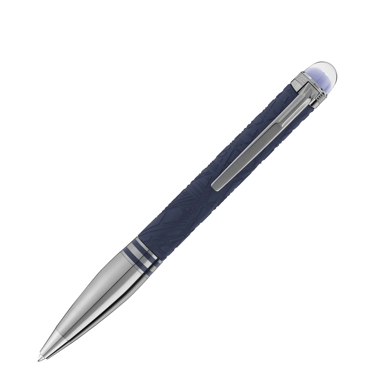 StarWalker SpaceBlue privește dincolo de planeta Pământ și se îndreaptă spre stele și galaxie. Noua colecție StarWalker aduce un aspect nou corpului din rășină, cu un design care amintește de structurile complexe ale modelului Widmanstätten, una dintre cele mai hipnotice creații ale naturii. Partea frontală și accesoriile din metal sunt acoperite cu ruteniu închis la culoare, însoțite de o nuanță albastră intensă a spațiului cosmic pentru rășina prețioasă mată, care amintește de nuanțele unui cer înstelat. În plus, subdomenul de pe vârful capacului, peste care plutește emblema Montblanc, are o culoare albastru intens, ca spațiul cosmic.