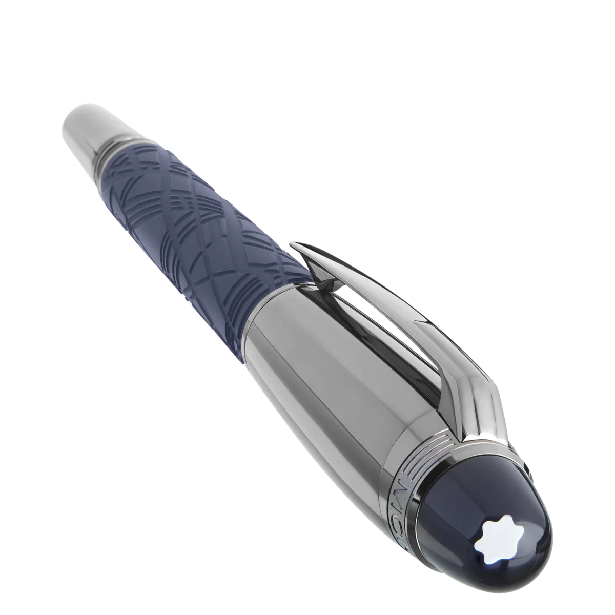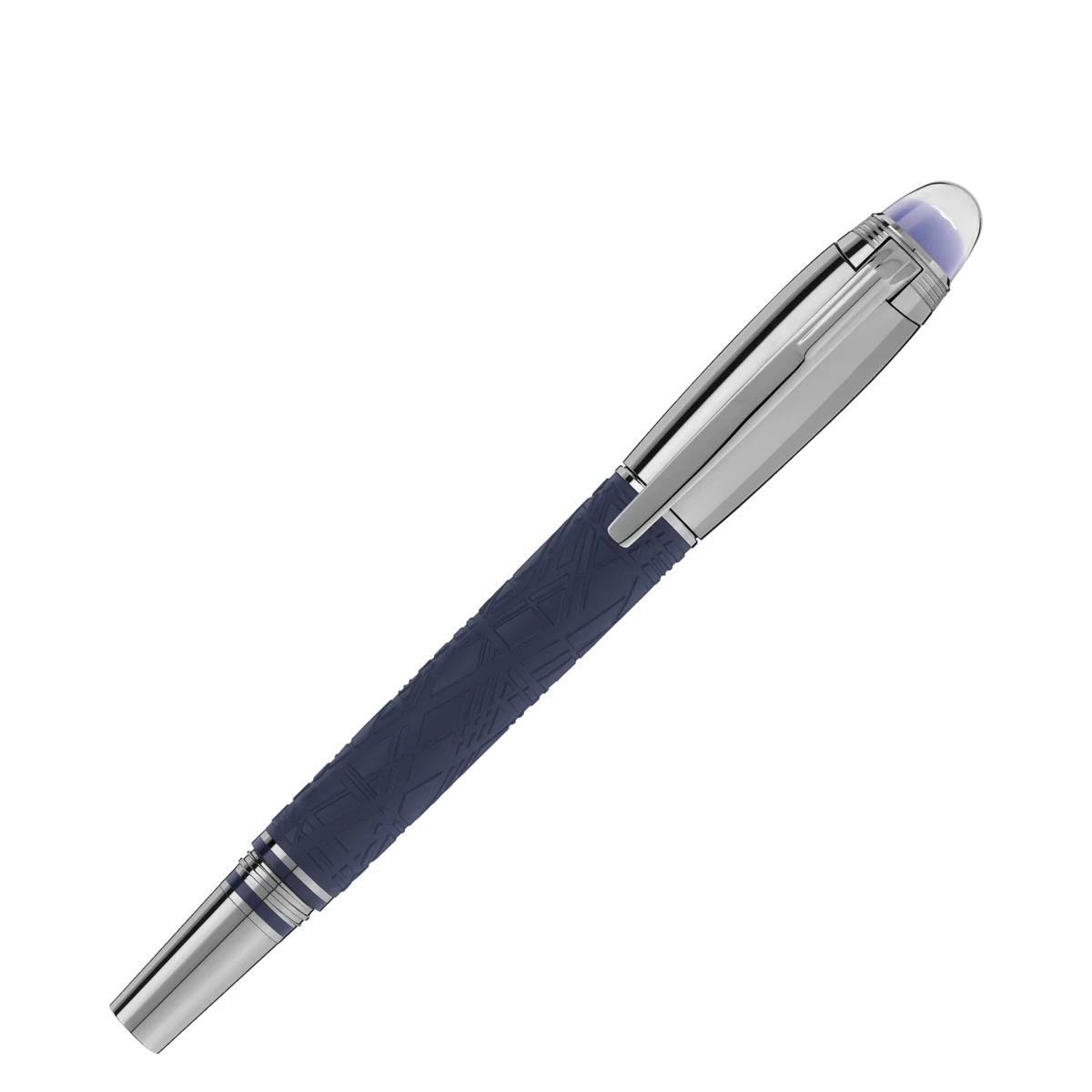 StarWalker SpaceBlue privește dincolo de planeta Pământ și se îndreaptă spre stele și galaxie. Această nouă colecție StarWalker aduce un aspect nou corpului din rășină, cu un design care amintește de structurile complexe ale modelului Widmanstätten, una dintre cele mai hipnotice creații ale naturii. Capacul metalic și accesoriile sunt acoperite cu ruteniu închis la culoare, însoțite de o nuanță albastră intensă a spațiului cosmic pentru rășina prețioasă mată, care amintește de nuanțele unui cer înstelat. În plus, subdomenul de pe vârful capacului, peste care plutește emblema Montblanc, are o culoare albastră intensă a spațiului cosmic. Stiloul este realizat manual, cu un peniț din aur Au 585 acoperit cu ruteniu.