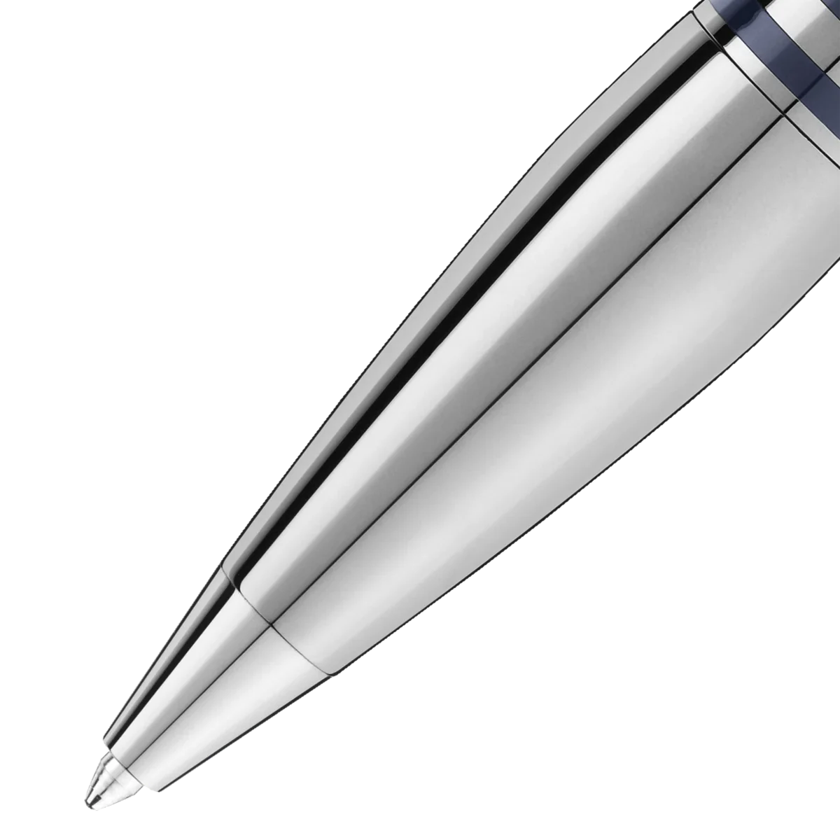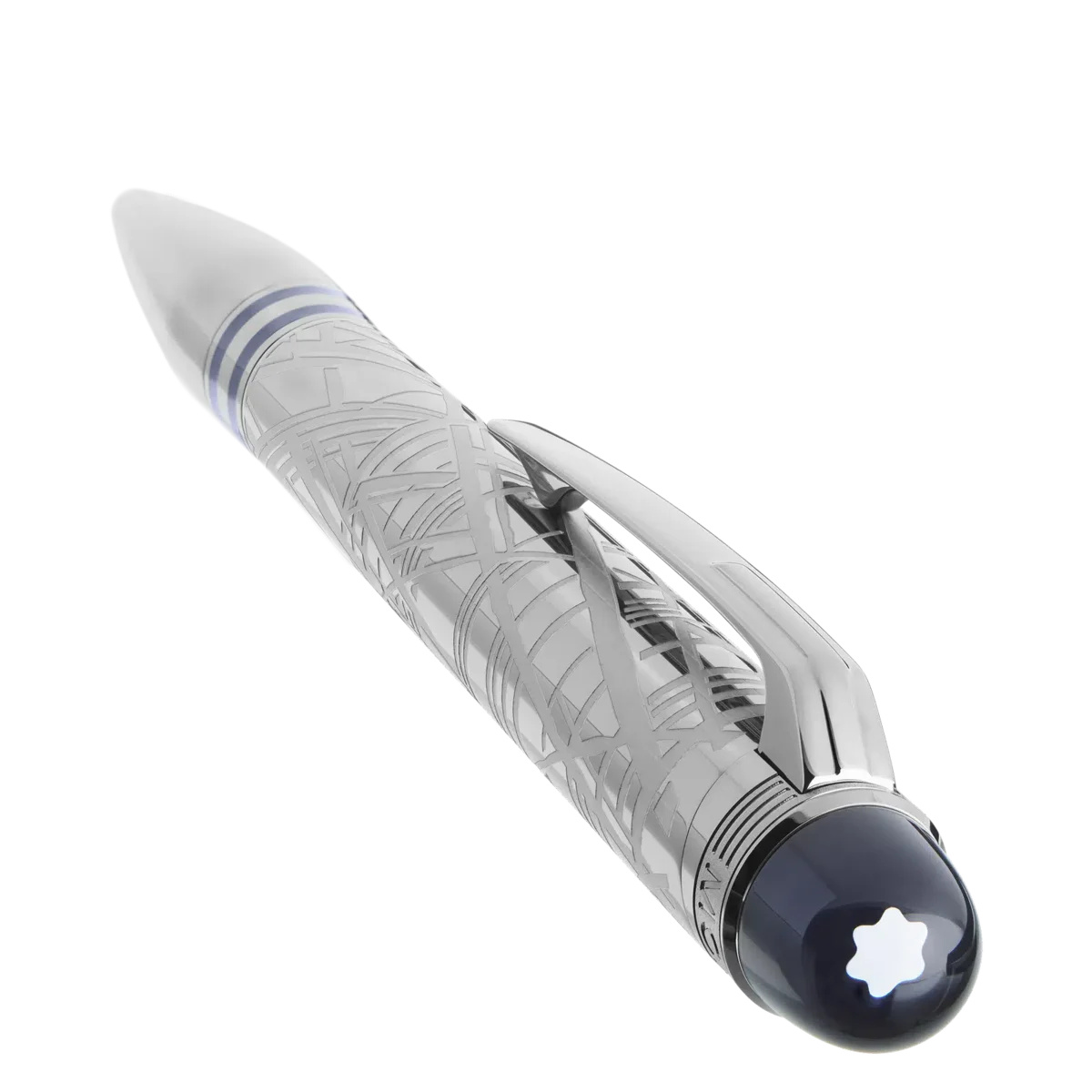 StarWalker SpaceBlue privește dincolo de planeta Pământ și se îndreaptă spre stele și galaxie. Noua colecție StarWalker aduce un aspect nou pentru corpul metalic, cu un design care amintește de structurile complexe ale modelului Widmanstätten, una dintre cele mai hipnotice creații ale naturii. Toate părțile metalice sunt acoperite cu ruteniu închis la culoare, însoțite de un subdome albastru intens pe capacul stiloului, care amintește de nuanțele unui cer înstelat, peste care plutește emblema Montblanc.
