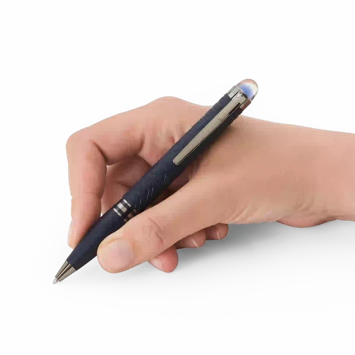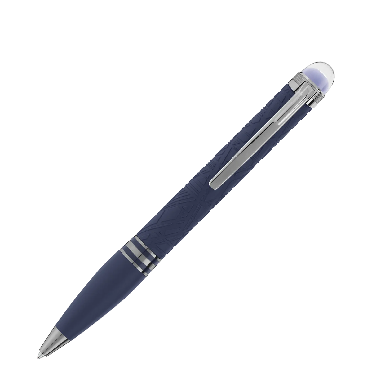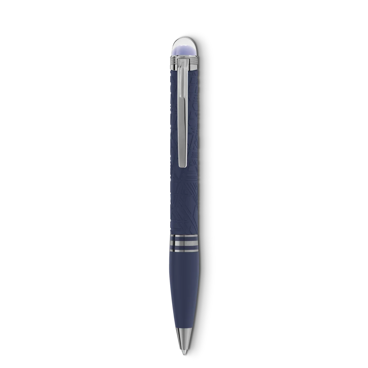 StarWalker SpaceBlue privește dincolo de planeta Pământ și se îndreaptă spre stele și galaxie. Noua colecție StarWalker aduce un aspect nou corpului din rășină, cu un design care amintește de structurile complexe ale modelului Widmanstätten, una dintre cele mai hipnotice creații ale naturii. Toate părțile metalice sunt acoperite cu ruteniu închis la culoare, însoțit de o nuanță albastră intensă a spațiului cosmic pentru rășina prețioasă mată, care amintește de nuanțele unui cer înstelat. În plus, subdomenul de pe vârful capacului, peste care plutește emblema Montblanc, este de un albastru intens al spațiului cosmic.
