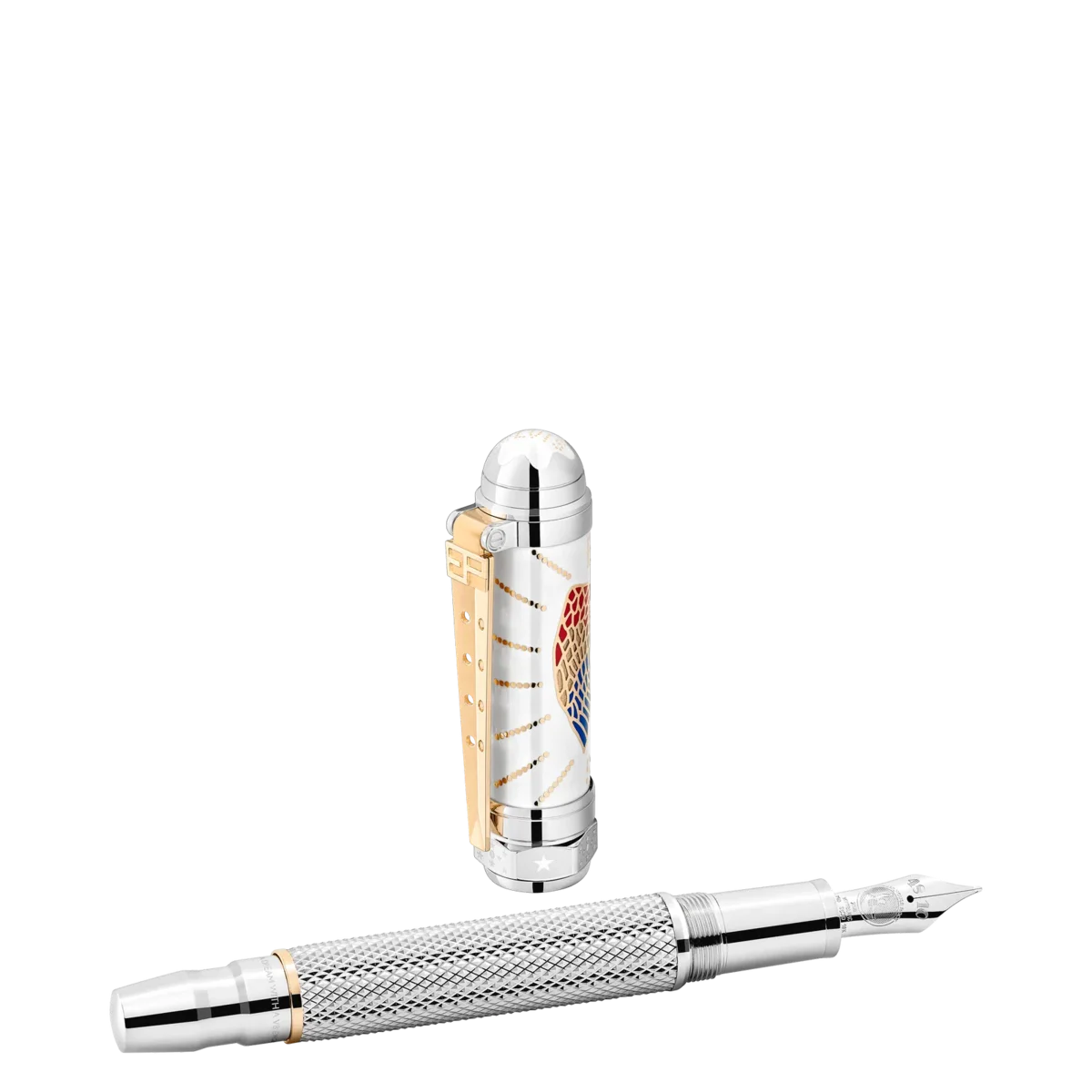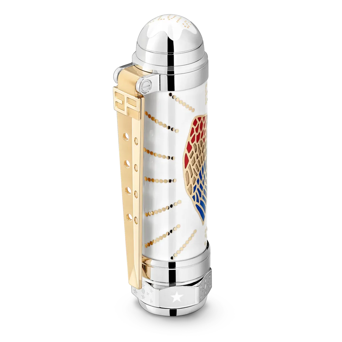 Elvis Presley este încă considerat una dintre cele mai importante icoane culturale ale secolului XX – „Regele Rock’n Roll-ului” care a marcat o generație. Născut în 1935, în Tupelo, Mississippi, și mutat în Memphis, Tennessee, Elvis Presley a devenit unul dintre cei mai faimoși muzicieni și actori. Forma generală a instrumentului de scris este cea a unei bujii de motor de mașină, inspirată de dragostea lui Elvis pentru motoarele V8, precum și forma clipului acoperit cu aur. Logo-ul „EP” provine de la ochelarii de soare care îi erau caracteristici. Capacul prezintă logo-ul „ELVIS” în cadrul emblemei Montblanc lăcuite în alb, iar modelul de pe capacul și corpul acoperite cu platină provine de la unul dintre inelele sale de aur. Celebra sa șapcă din „Aloha Hawaii” a fost luată ca bază pentru decorul lăcuit cu vultur de pe capac, iar pe con este gravată o citată a lui Elvis: „Ambiția este un vis cu un motor V8”.