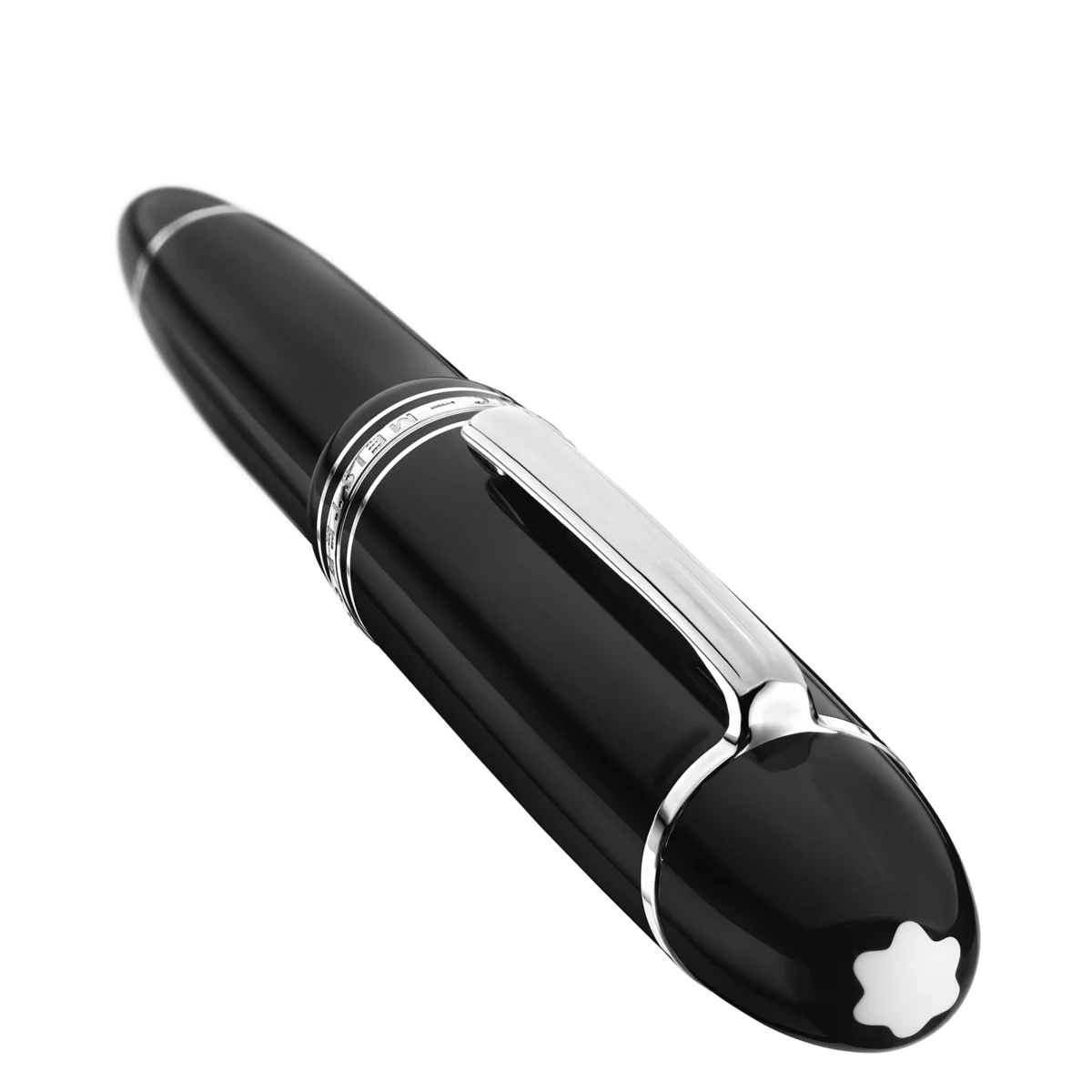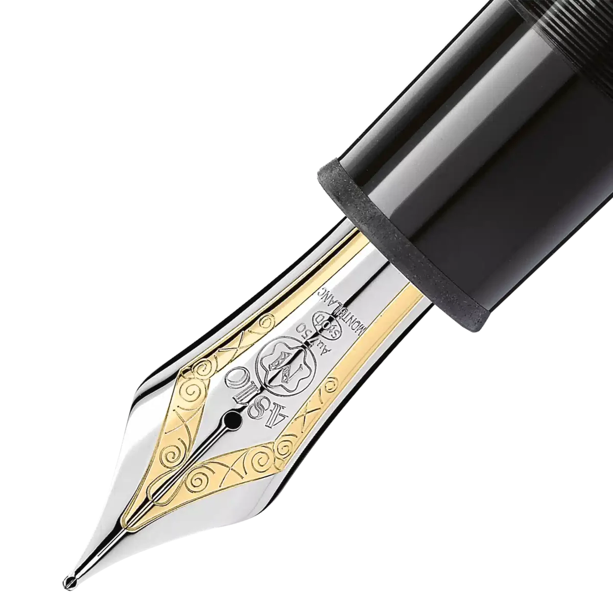 Meisterstück 149 – un design care scrie istorie. Rășină prețioasă de un negru intens, cu detalii placate cu platină, surmontată de emblema stea albă și finisată cu un peniț din aur Au750 realizat manual, devine o icoană a designului Montblanc.