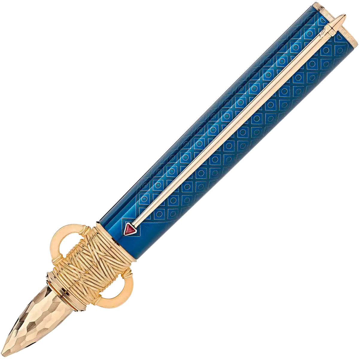 Moctezuma I a fost încoronat conducător al marelui Imperiu Aztec în 1440, marcând astfel începutul epocii de aur a aztecilor. În timpul domniei sale, el a modelat imaginea statului aztec pe care o cunoaștem astăzi – un stat bogat în cultură și mitologie. Capitala Tenochtitlán, astăzi Mexico City, a înflorit sub domnia sa. Montblanc Patron of Art Omagiu adus lui Moctezuma I Ediție limitată 4810, cu accesorii placate cu aur, este dedicat acestui conducător suprem al uneia dintre cele mai speciale culturi din istoria mondială. Designul general este inspirat de un atlatl, un dispozitiv aztec pentru aruncarea sulițelor. Forma conului, rafinată cu un finisaj ciocan, se bazează pe un cuțit aztec de sacrificiu cu lamă de obsidian. Culorile lacului – petrol și roșu carmin – sunt inspirate de culorile mantiei regale. Cele două hieroglife care decorează capacul simbolizează anii domniei lui Moctezuma I. Penița din aur masiv Au 750, realizată manual, este împodobită cu o gravură fină inspirată de simbolul aztec al orașului Tenochtitlán: un cactus cu trei brațe, cu o diademă regală și două suluri.