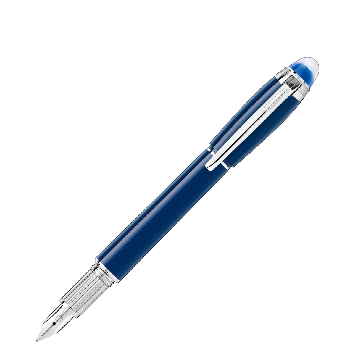 StarWalker Blue Planet înseamnă să pășești printre stele, să explorezi cosmosul și galaxiile străine și să faci parte din una dintre cele mai misterioase și puternice aventuri pe care le-a întreprins vreodată omenirea: explorarea spațiului. Apropiindu-ne de planeta noastră, Pământul, ne inspirăm din apă, sursa vieții. Tehnologia emblemei StarWalker prezintă un dom albastru translucid cu o stea plutind deasupra, care reprezintă Pământul care apare deasupra orizontului lunar, așa cum se vede de pe Lună. StarWalker Precious Resin vine cu accesorii placate cu platină și un corp și un capac din rășină prețioasă albastră. Stiloul este realizat manual, cu un peniță din aur Au585 / 14K acoperită cu rodiu.