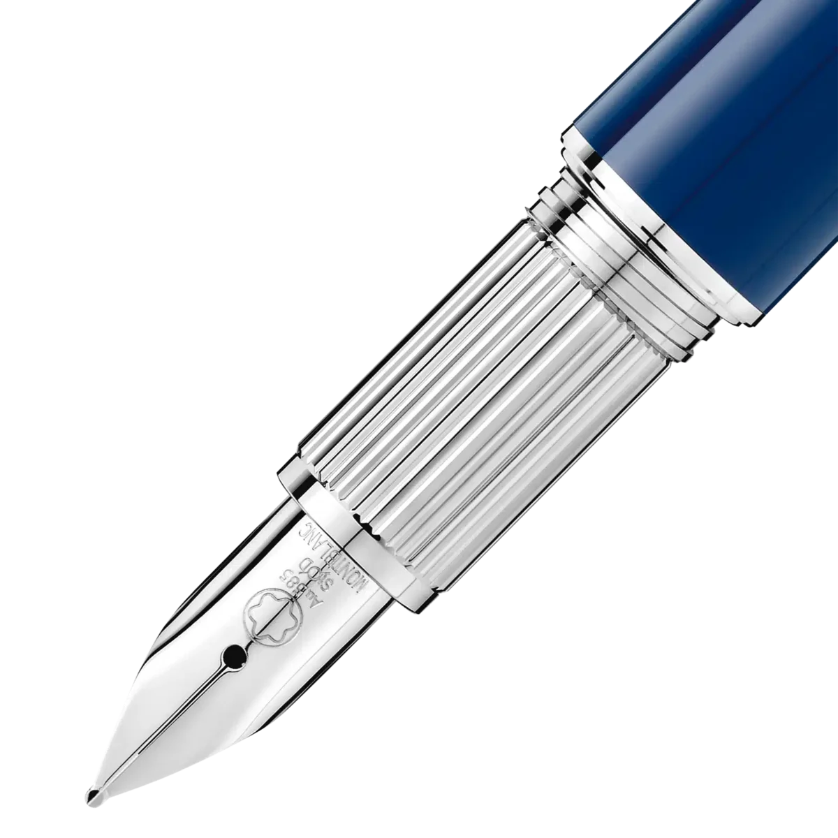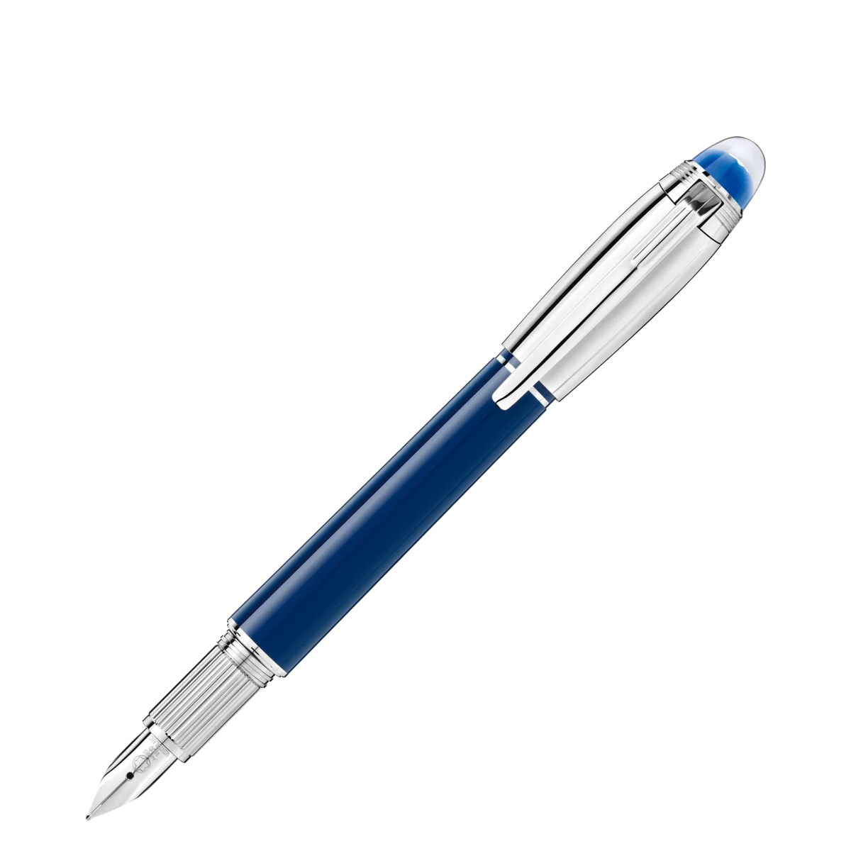 StarWalker Blue Planet înseamnă să pășești printre stele, să explorezi cosmosul și galaxiile străine și să faci parte din una dintre cele mai misterioase și puternice aventuri pe care le-a întreprins vreodată omenirea: explorarea spațiului. Apropiindu-ne de planeta noastră, Pământul, ne inspirăm din apă, sursa vieții. Tehnologia emblemei StarWalker prezintă un dom albastru translucid cu o stea plutind deasupra, care reprezintă Pământul care apare deasupra orizontului lunar, așa cum se vede de pe Lună. Stiloul StarWalker Blue Planet Doué este prevăzut cu un capac și accesorii placate cu platină și un corp din rășină prețioasă albastră. Stiloul este realizat manual, cu un peniță din aur Au585 /14 K acoperită cu rodiu.