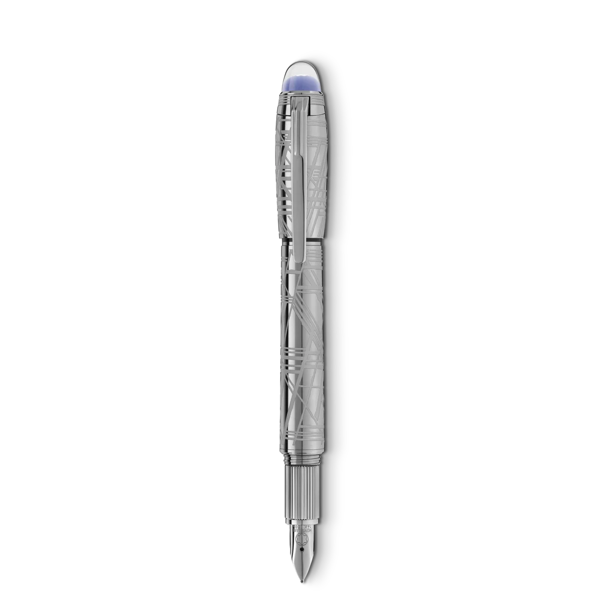 StarWalker SpaceBlue privește dincolo de planeta Pământ și se îndreaptă spre stele și galaxie. Noua colecție StarWalker aduce un aspect nou capacului și corpului metalic, cu un design care amintește de structurile complexe ale modelului Widmanstätten, una dintre cele mai hipnotice creații ale naturii. Toate părțile metalice sunt acoperite cu ruteniu închis la culoare, însoțite de un subdome albastru intens pe vârful capacului, care amintește de nuanțele unui cer înstelat, peste care plutește emblema Montblanc. Stiloul este realizat manual, cu un peniț din aur Au 585 acoperit cu ruteniu.