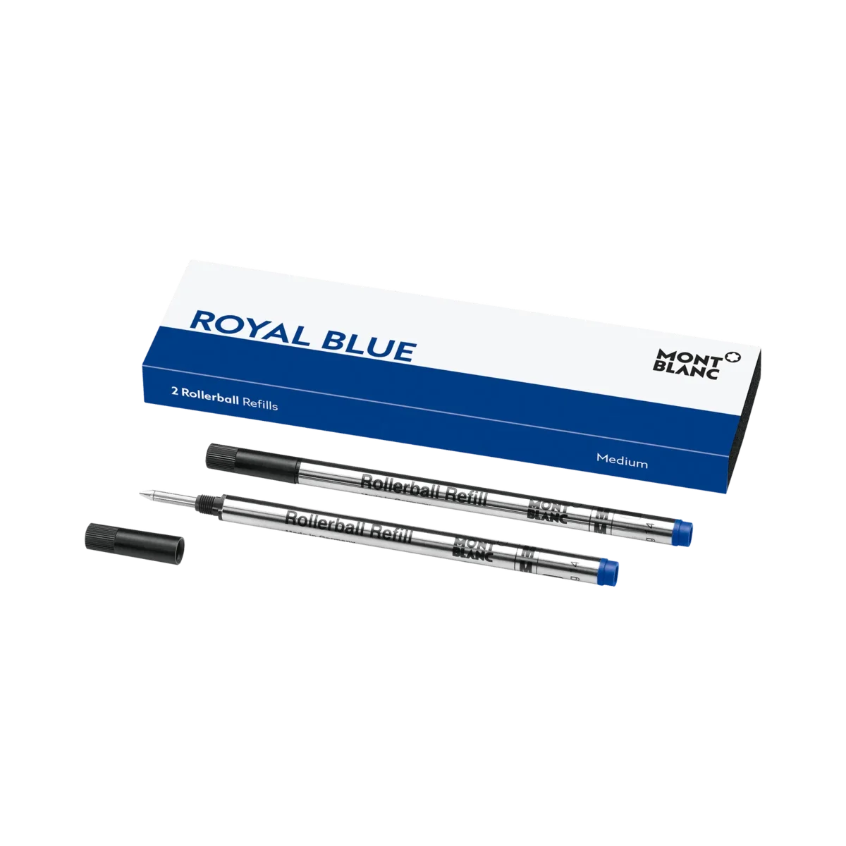 Rezerve pentru rollerball Montblanc, albastru regal. Potrivite pentru toate stilourile rollerball/fineliner Montblanc, cu excepția stilourilor rollerball fără capac din colecțiile Meisterstück LeGrand, Montblanc M și Heritage. Unități de ambalare = 2 rezerve. M = mediu