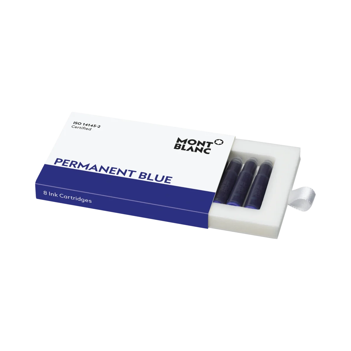 Potrivite pentru toate stilourile Montblanc cu sistem de cartușe. Cernelurile permanente Montblanc, „Permanent Black” și „Permanent Blue”, sunt testate în conformitate cu DIN ISO 14145-2 și sunt potrivite pentru utilizare în documente. Unități de ambalare = 8 cartușe