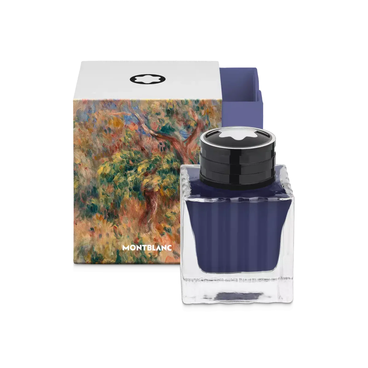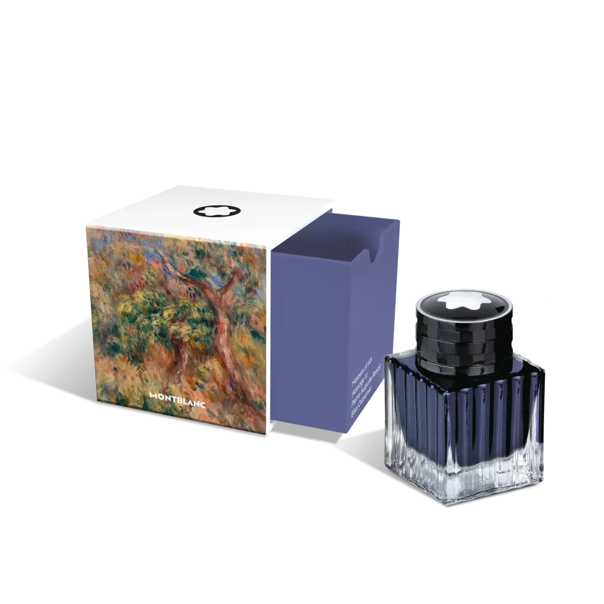 Sticluță de cerneală Montblanc, Masters of Art Omagiu adus lui Pierre-Auguste Renoir, Bleu Outremer (albastru ultramarin) – 50 ml Sticluțele de cerneală Montblanc Special Edition sunt disponibile într-un ambalaj pătrat care evocă conceptele și temele fiecărei colecții, făcându-le obiecte de colecție valoroase pentru pasionații Montblanc.